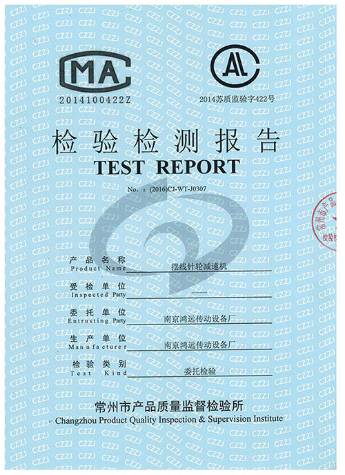 摆线针轮减速机检测报告