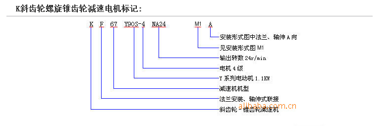 K斜齿轮螺旋锥齿轮减速电机型号: